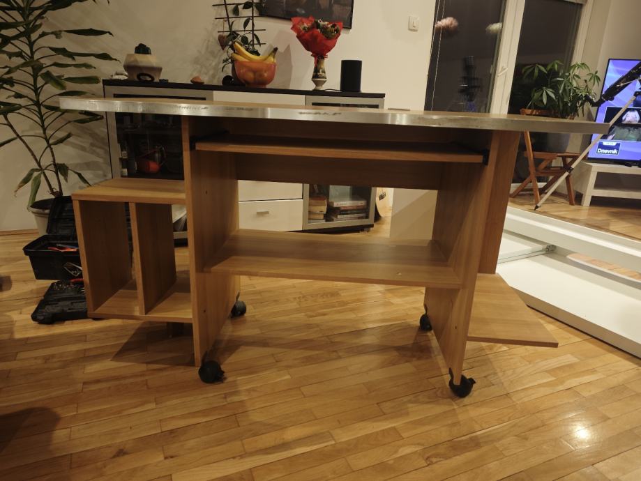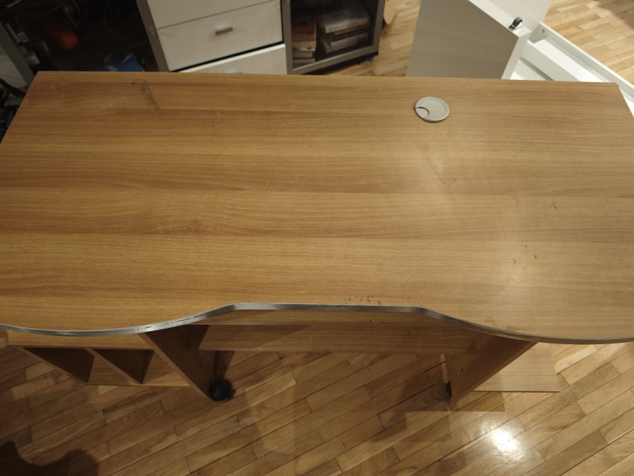 Radni stol za dječju sobu, 130 širina 80 visina. Ima nekih fleka od flomastera i ladica se ne može izvući iako vjerujem da se može popraviti. Cijena simbolična, osobni prikup u Matuljima, ne rastavljamo ga.