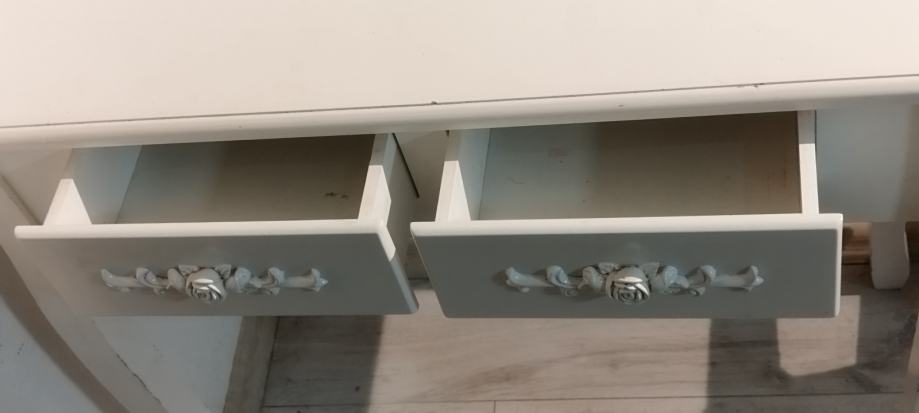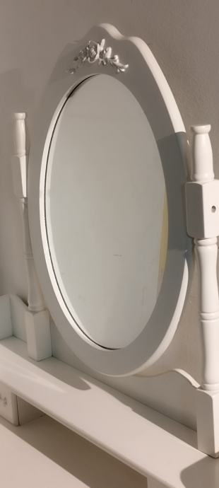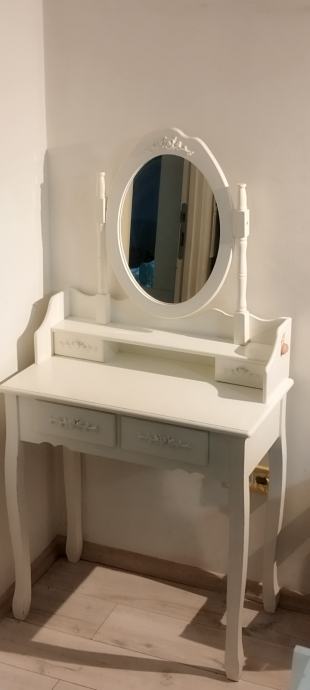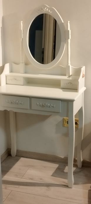 Prodajem dobro usčuvani stolić s ogledalom za šminkanje ukrašen reljefima. 75cm D. x 40cm Š. x 145cm V.
