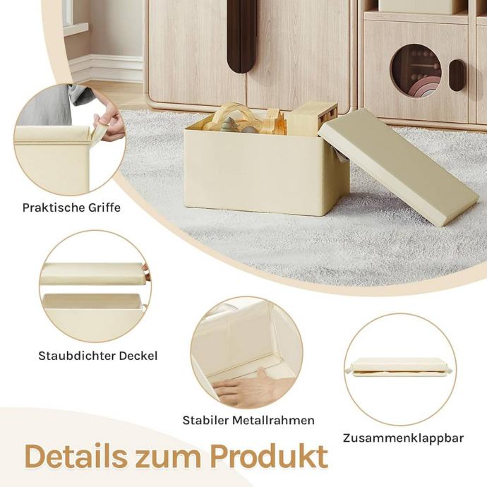 Zahvaljujući sklopivom dizajnu, kutije su jednostavne za spremanje kada se ne koriste. Lako se uklapaju u različite prostorije – od ormara, polica, pod kreveta, do dnevnog boravka, spavaće sobe, radne sobe ili dječje sobe.