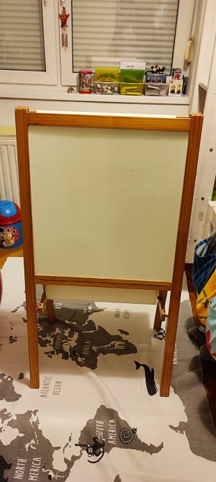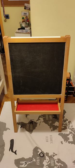 ŠTAFELAJ, DJEČJE, IKEA, BIJELA STRANA / WHITEBOARD ZA FLOMASTER ZA WHITEBOARD , TAMNA STRAN ZA KREDE, MOGUĆNOST I ROLE ZA PAPIR (OSTALO CCA POLA ROLE) - RELATIVNO DOBRO STANJE