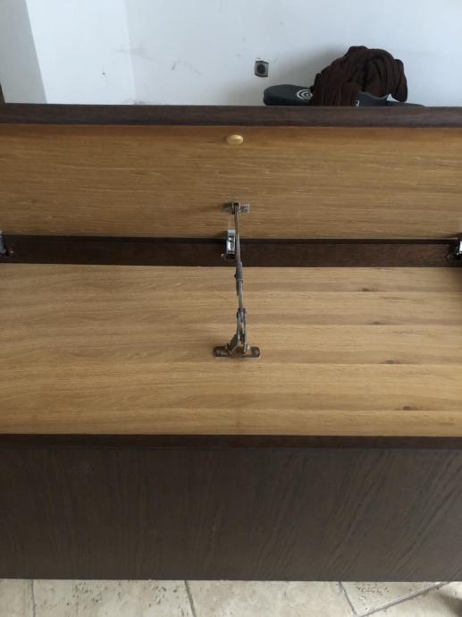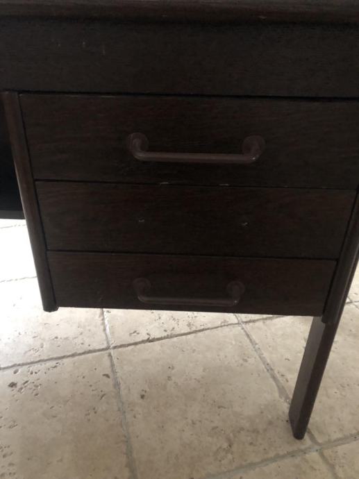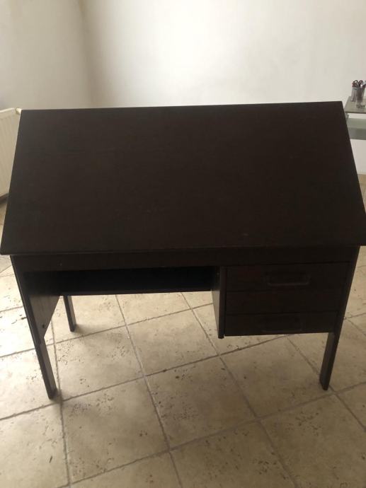 Stol sa podesivim nagibom pogodan za crtanje, čvrst sa tri ladice. Na jednoj ladici nedostaje ručkica.