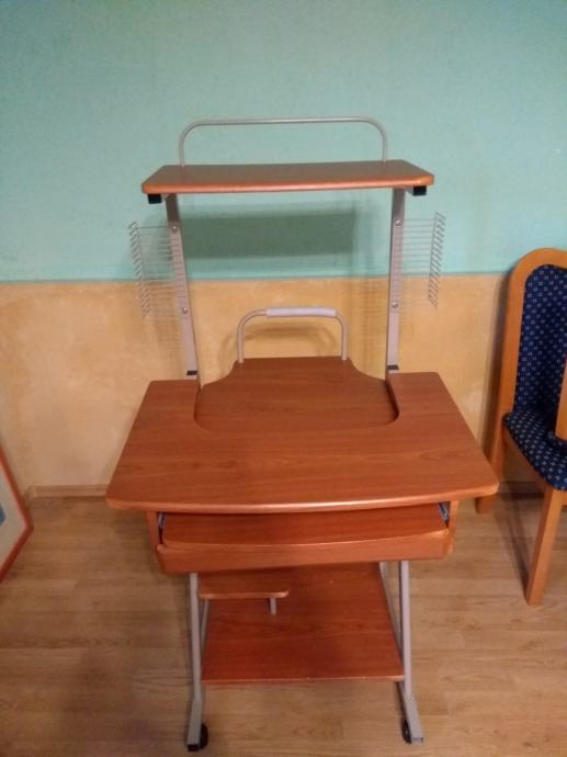 Ima pomičnu ladicu za tipkovnicu. Točkići ispravni.