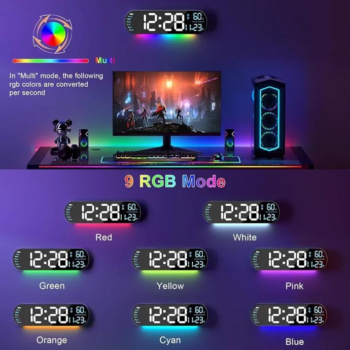 NOVO!! Velik smart šareni LED sat sa timerom i ambijentalnim svjetlom