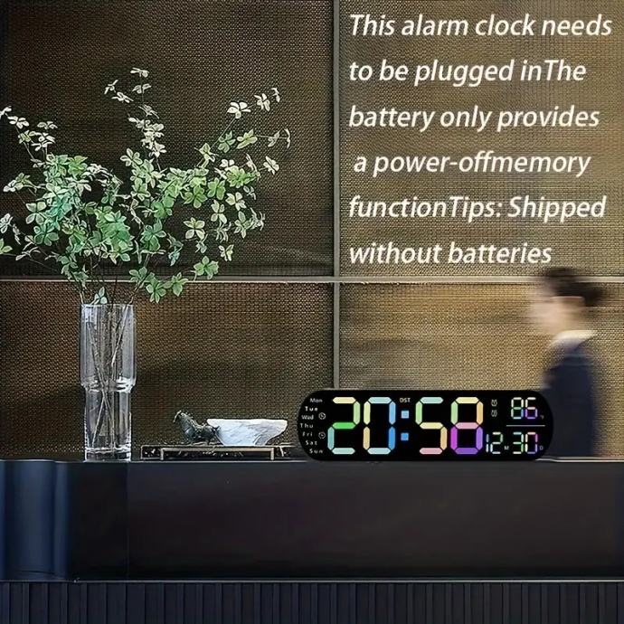 Veliki pametan ambijentalni LED digitalni zidni sat sa mjeračem temperature u sobi i timerom za odbrojavanje ili dobrojavanjem za vremenski ograničene edukativne radnje u dječjoj sobi i dječje zadatke, pokazuje i dan u tjednu i datum