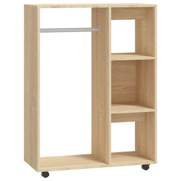 Ovaj ormarić za pohranu izrađen je od konstruiranog drva, što ga čini izdržljivim i čvrstim, savršenim za spremanje i organiziranje vaše odjeće. Kotači ispod ormarića omogućuju vam da ga lako pomaknete na pravo mjesto. Ovaj ormar ima veliki otvoreni pretinac i bočne police s 3 razine, tako da možete imati pri ruci sve što želite. Osim toga, ormar se lako čisti vlažnom krpom.