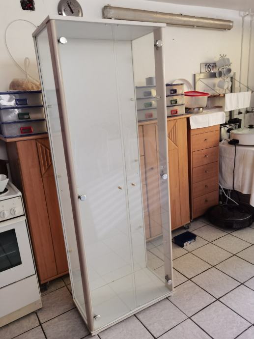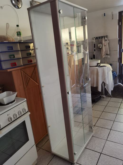 Vitrina za sve prostorije u staklu lijepa sa policama od stakla sve što stavite unutra sve je pregledno.Kao nova.Mjere