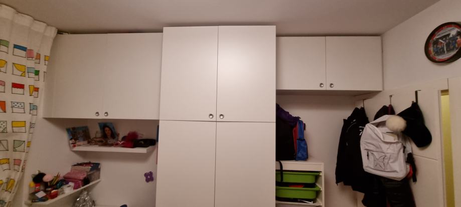 2 dio - 3 ormara ( visoki i 2 x niski viseći) visoki visina 255 cm / dužina 90 cm / dubina 60 cm i ormari gornji visina 45 cm / dužina 95 cm / dubina 40 cm i visina 75 cm / dužina 110 cm / dubina 50 cm.
