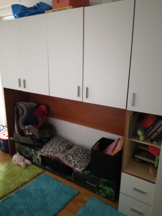 Prodajemo djeciju sobu, stara 3 godine, stanje jako dobro. Ormar+krevet kojeg mozete staviti ispod ormara tako da stane sve na jedan zid. Duzina ormara 240 cm, visina 210. Krevet 190x90.