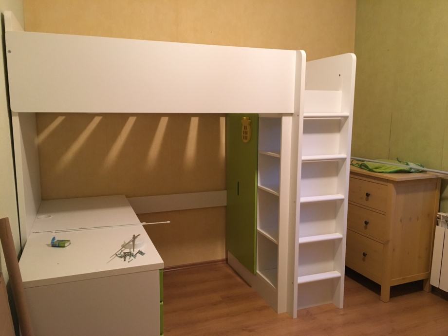 Dječja soba ikea mod. STUVA zelena boja, povišeni krevet, ormar, pisaći stol sa tri ladice. Korištena 3 mjeseca, prodajemo zbog preseljenje.