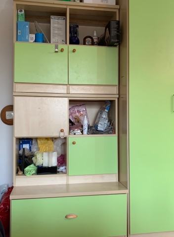 Ima 4 ormara (2 bez ladica, 1 s ladicama i 1 koji ima i ladice i prazna mjesta),
