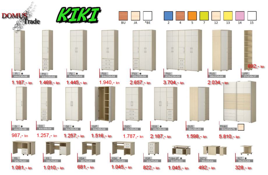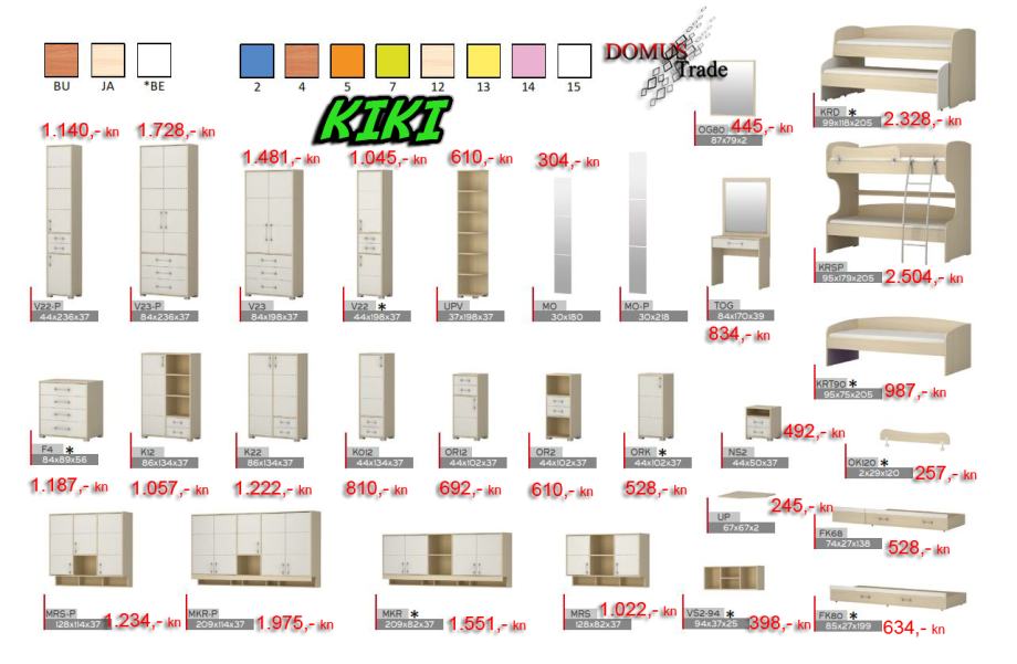 Cijenik elemenata KIKI programa pogledajte u priloženim fotografijama oglasa.