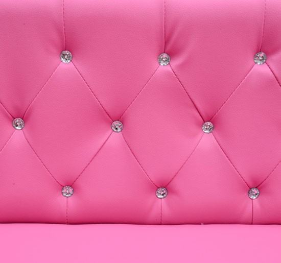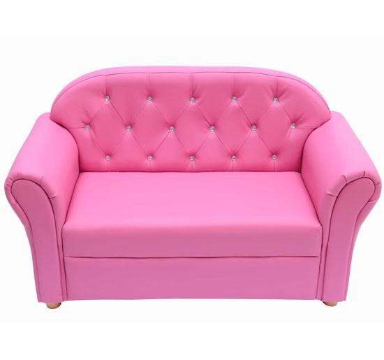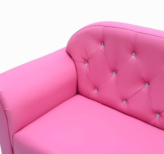 ČvrstI kauč / sofa / dvosjedu rozoj boji, visoke kvalitete izrade, prigodna za uređivanje prostora vrtića i sličnih prostora. Izdržljiva sintetička koža, vrlo glatka i meka za udobno sjedenje.