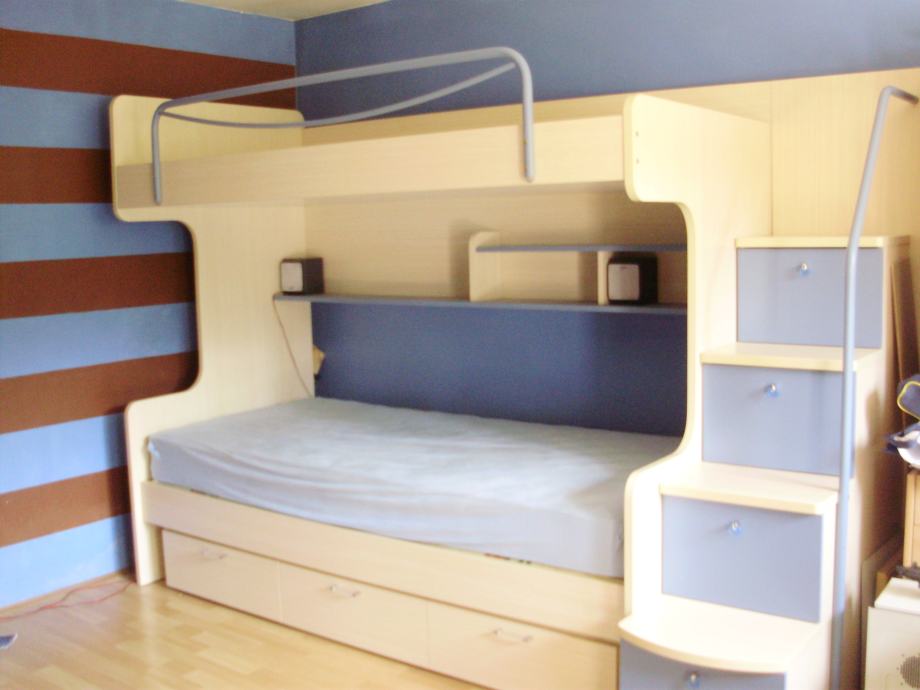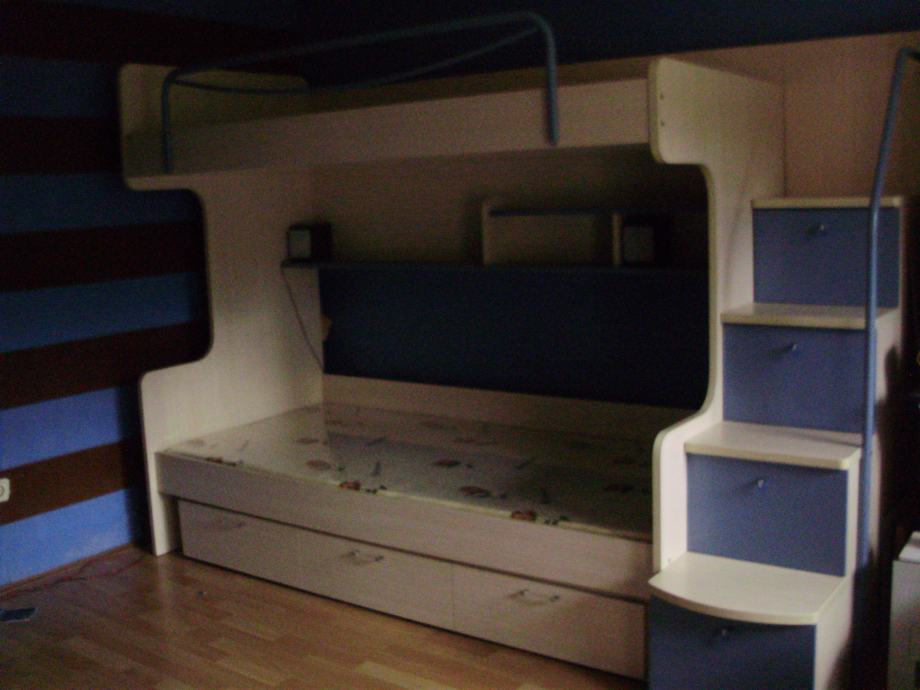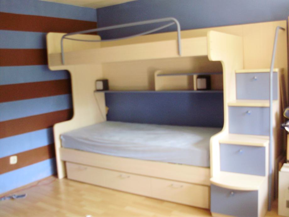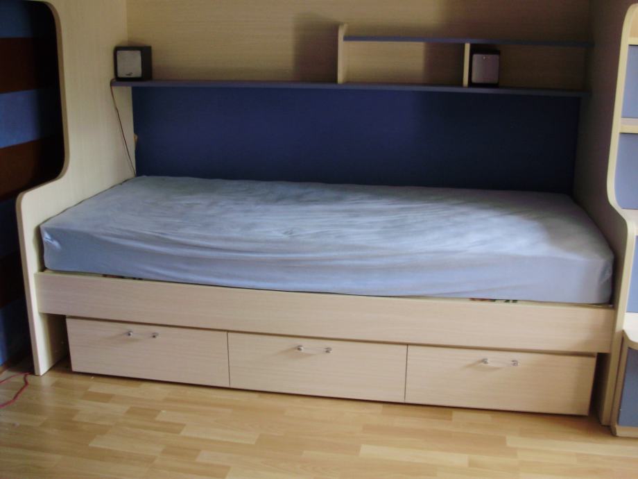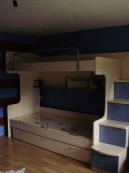 Krevet na kat s tri velike i 4 manje ladice za garderobu. Mini dječja soba idealno za manje prostorije.Krevet jako malo korišten. Dužina - 250 cm