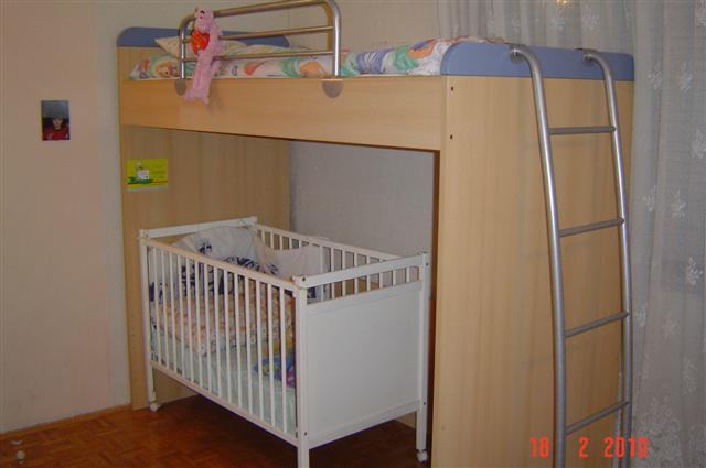 Prima namještaj, krevet na kat, ogradica i ljestve, bez podnice i madraca ali sa okvirom za doljnji krevet, vrlo očuvano (cijena u salonu 2500 kn)