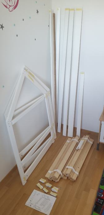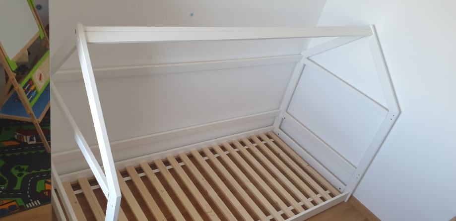 Prodajem dječji krevetić (bez madraca) u obliku kućice star malo manje od dvije godine u izvrsnom stanju jer je dijete stalno spavalo sa roditeljima u bračnom krevetu. Razlog prodaje osim toga je i nabavka kreveta na kat zbog rođenja drugog djeteta.