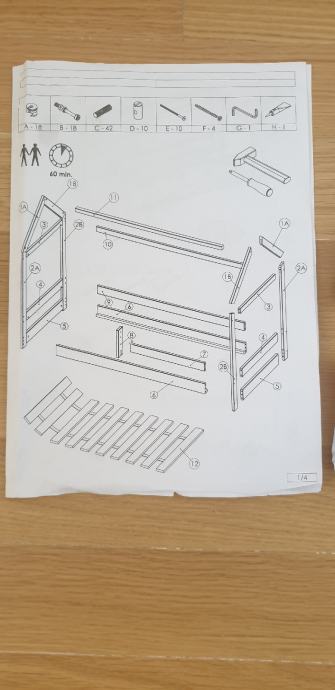 Krevet je kompletno rastavljen osim zaglavlja i podnožja koji se u slučaju potrebe također mogu rastaviti.