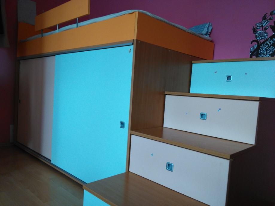 Prodajem savršeno očuvan dječji krevet (ali velikih dimenzija 90x200 :) ) " na kat" ispod kojeg su dva velika ormara te stepenice koje su ujedno i velike ladice.