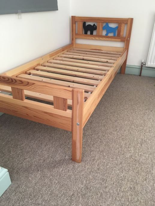 Dječji krevet od punog drva s posebno izrađenim anatomskim Oriolik madracem dimenzija 160x70 cm.