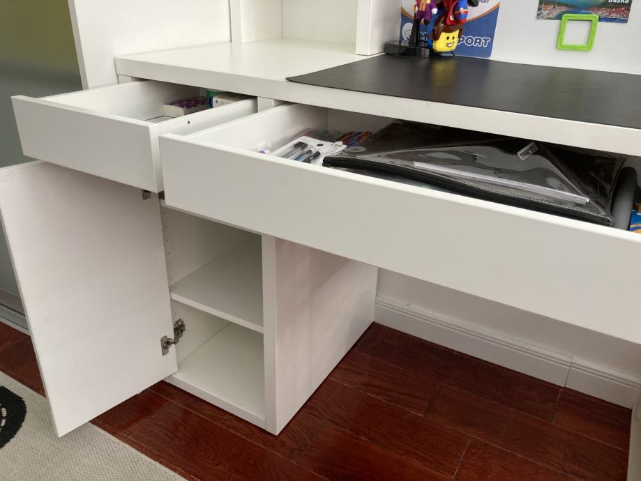 Prodajem Micke djecji radni stol dimenzija 105x50x75 sa zidnim policama i magnetnom plocom.