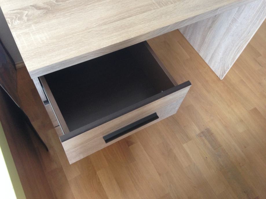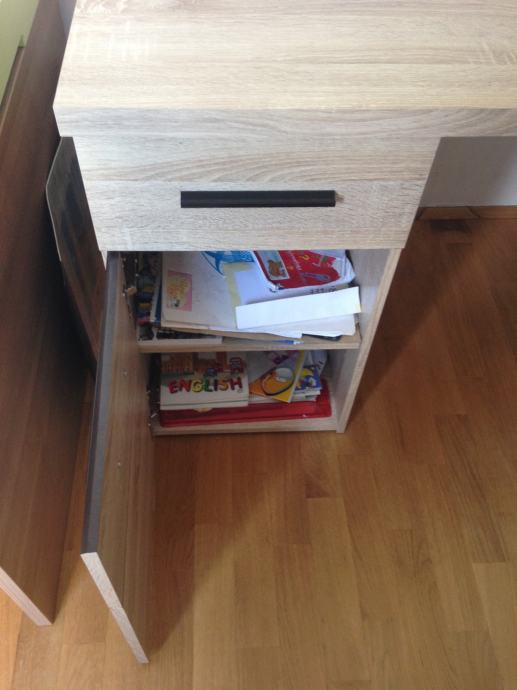 Stol ima jednu ladicu jedan zatvoreni dio s vratima.