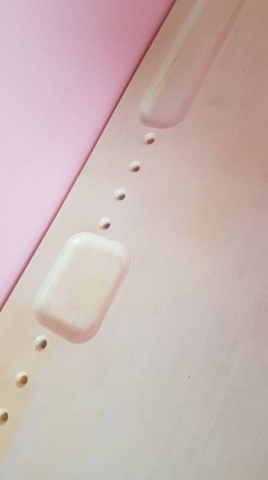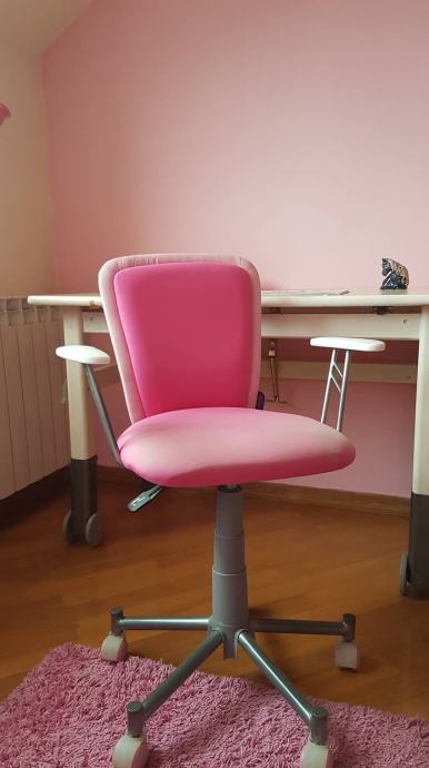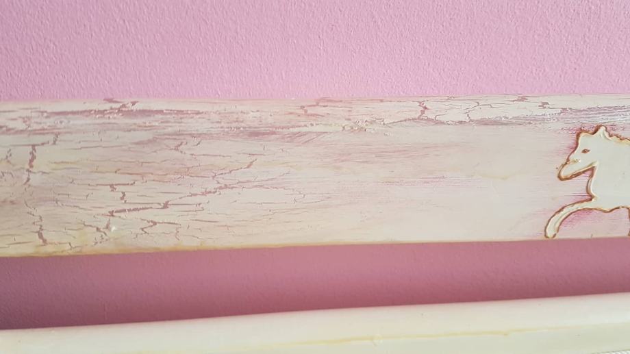 *krevet i stol su oslikani tehnikom "decoupage" s rozom podlogom i bjelim zavrsnim premazom te temom konja na krevetu.