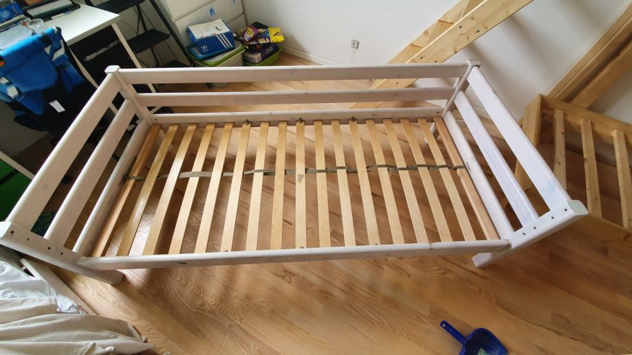Na slici se ne vidi ali uz krevet dolazi i bočna ograda a moguće je nadokupiti i podizače kreveta i ljestve tako da se krevet podigne 120cm pa je moguće napraviti igraonicu ispod. Cijena kompleta je 100 EURa