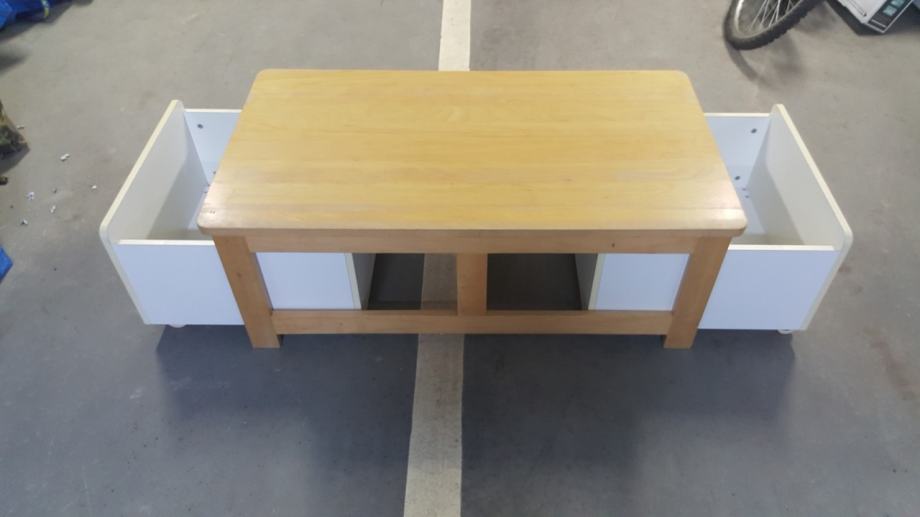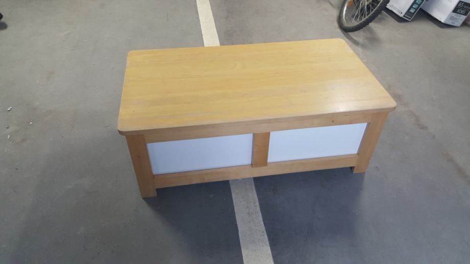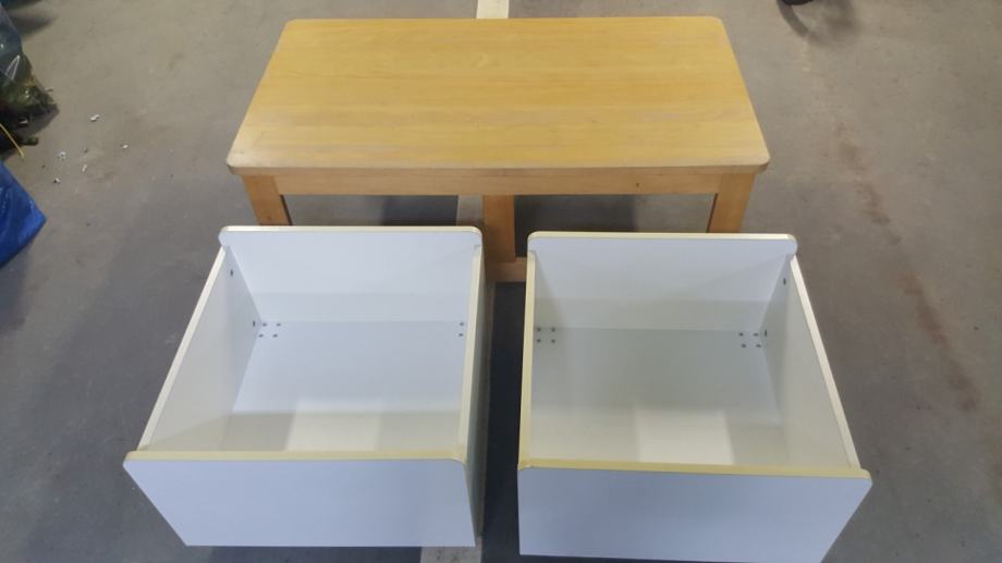 Prodajem Ikea stolic drveni ispod kojeg su dva boxa (za igračke, knjige i ostalo) 112 cm dužine, 62 cm širine, 42 cm visine, cijena 100 kn, te dvije plastične kutije s poklopcima na kotačiće i mrežu za igračke za 100 kn.