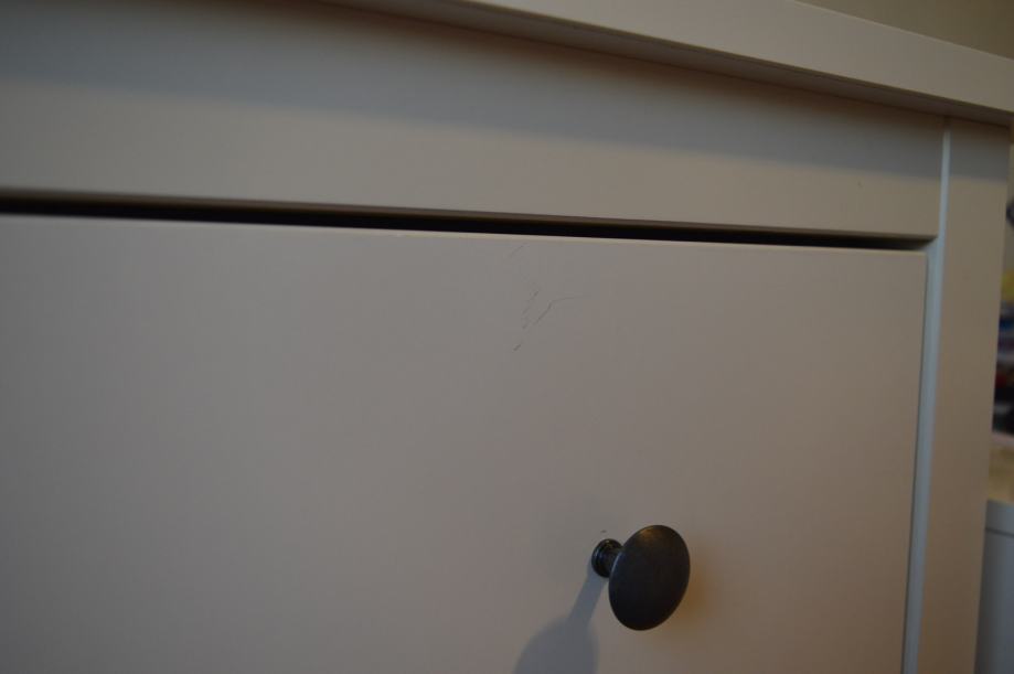 Komoda je u jako dobrom stanju, sa sitnim, jedva zamjetnim tragom na prvoj ladici ( vidi sliku).