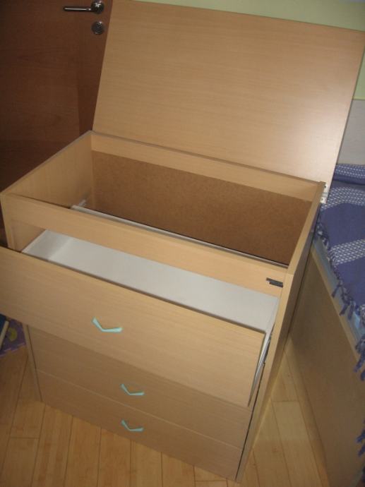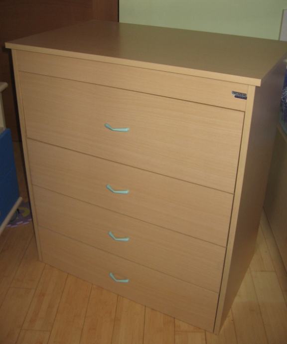 Dječji ormarić za prematanje (Adax), 4 ladice, spužvu potrebno dokupiti, prostor za kadicu, 4 kotačića (mogu se montirati), dobro očuvan, dimenzije 82x72x43 cm.