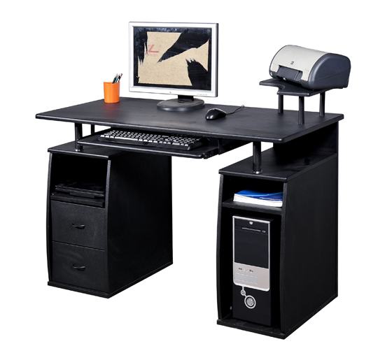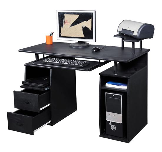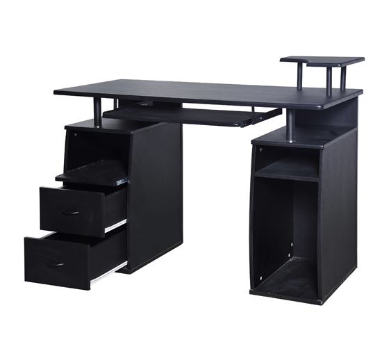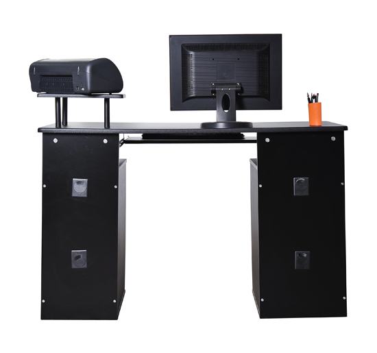 Crni stol za računalo pruža prostor za računalo, monitor, pisač i olovke, a također je opremljen sa odvojenim djelom za tipkovnicu Savršen stol za svoje radno mjesto u vašem domu ili uredu!