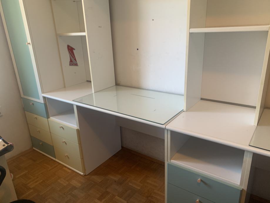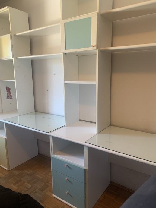 Radni stol 135x78x67,5. X2. Police za radni stol. 135x153x 32. X 2. Ormar za viseću garrderobu unski
