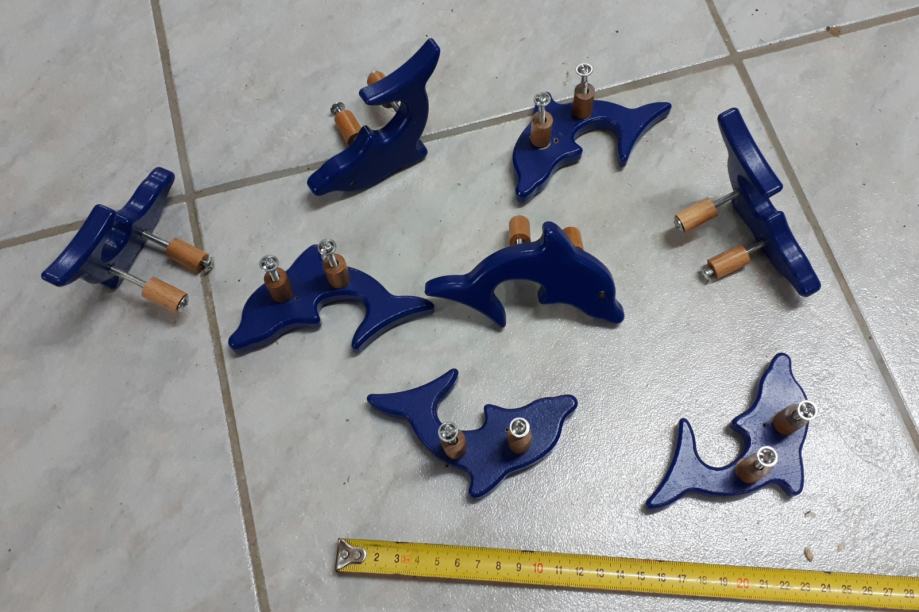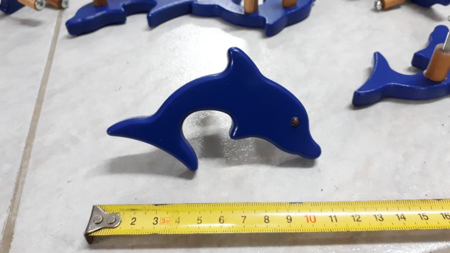 Prodajem 8 ručkica za dječji namještaj, oblik dupina, plave boje, sa 2 vijka.