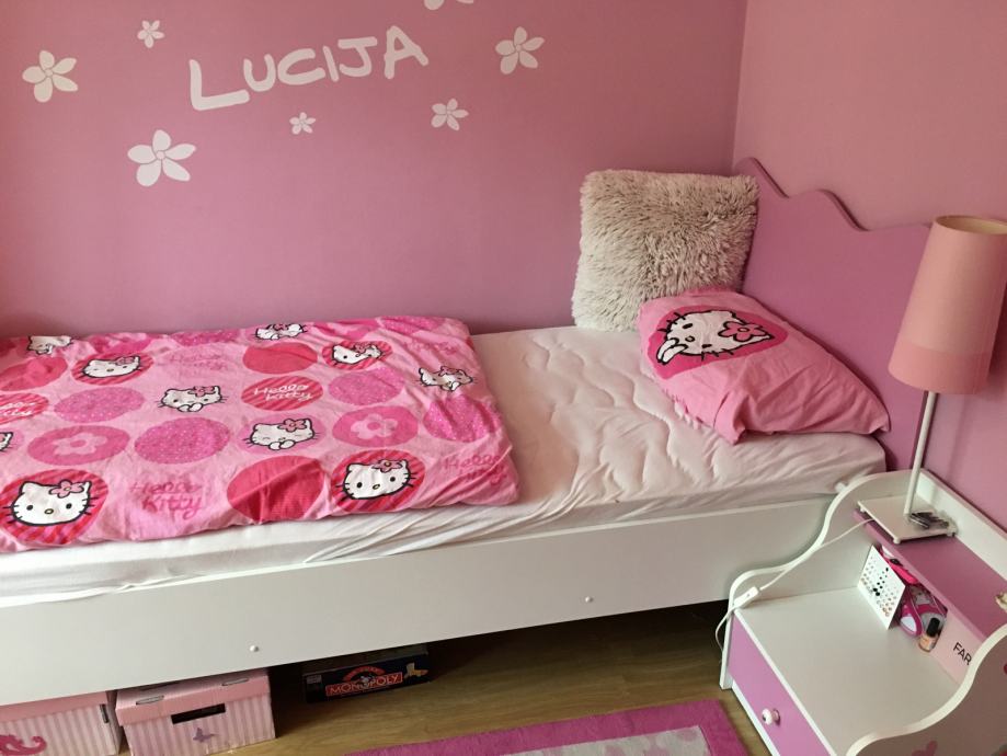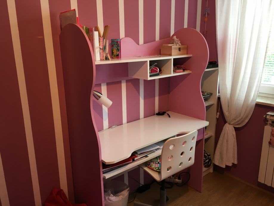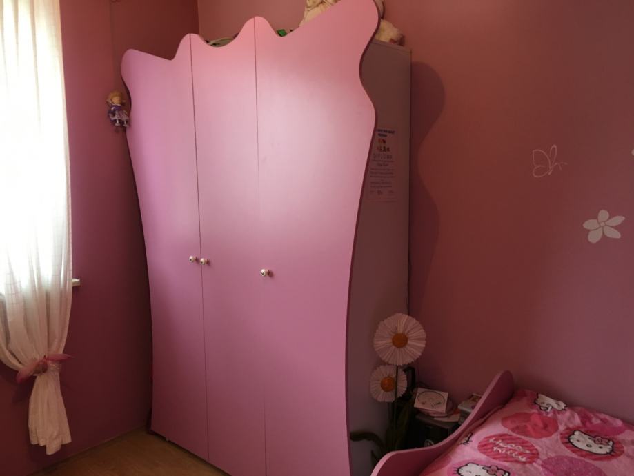 Soba je očuvana, u kompletu je krevet dimenzije 90* 200, zatim ormar 140*200*50, radni stol 158*114*42 i nočni ormarić.