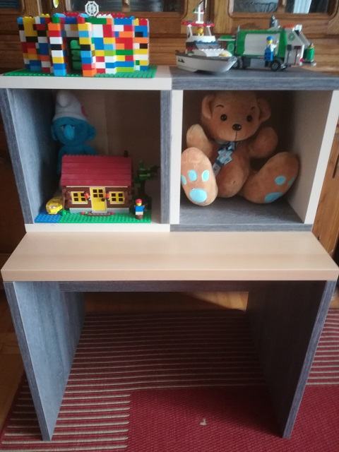 Stolica može poslužiti i kao spremište za igračke i kao ukrasna polica za igračke, slikovnice, lutke i sl.