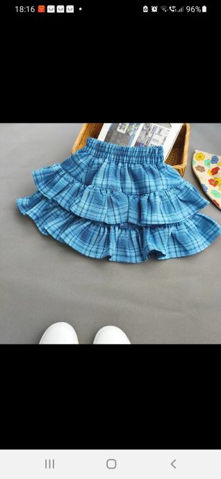 Plava karirana suknja za djecu broj 140. Čvrst deblji kvalitetan materijal sa malo elastina, rastezljivo u struku . Kontaktirati me možete porukom na whatsapp 099 403 8140