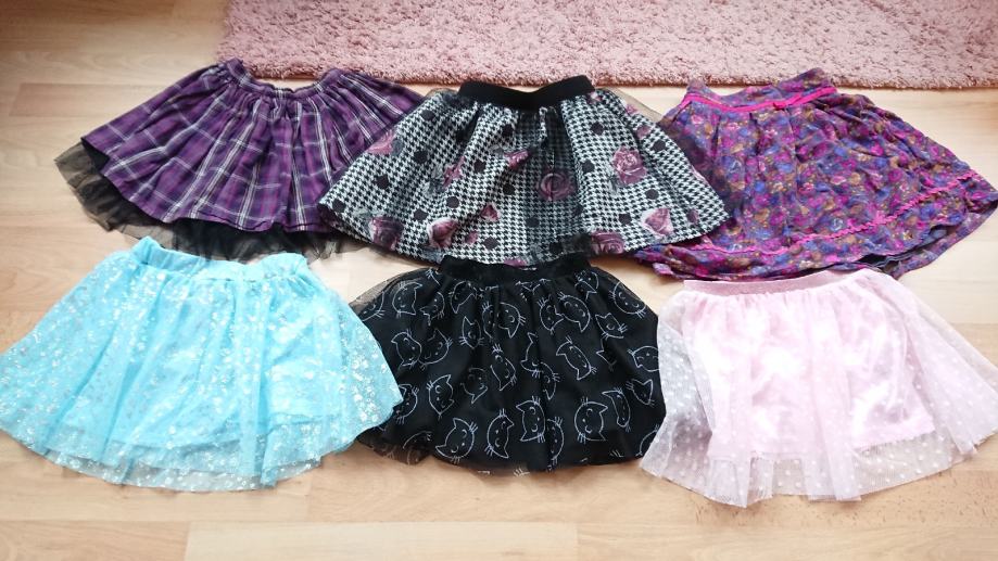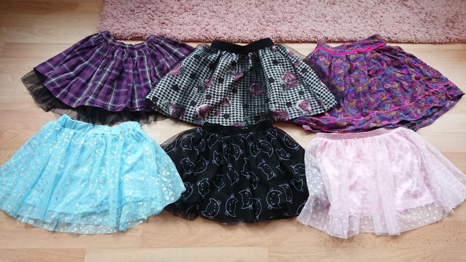 Suknja 104 110 za djevojčice, lot od 6 predivnih suknjica, nosive su i duže, pet prodajemo, jednu poklanjamo, razni modeli: