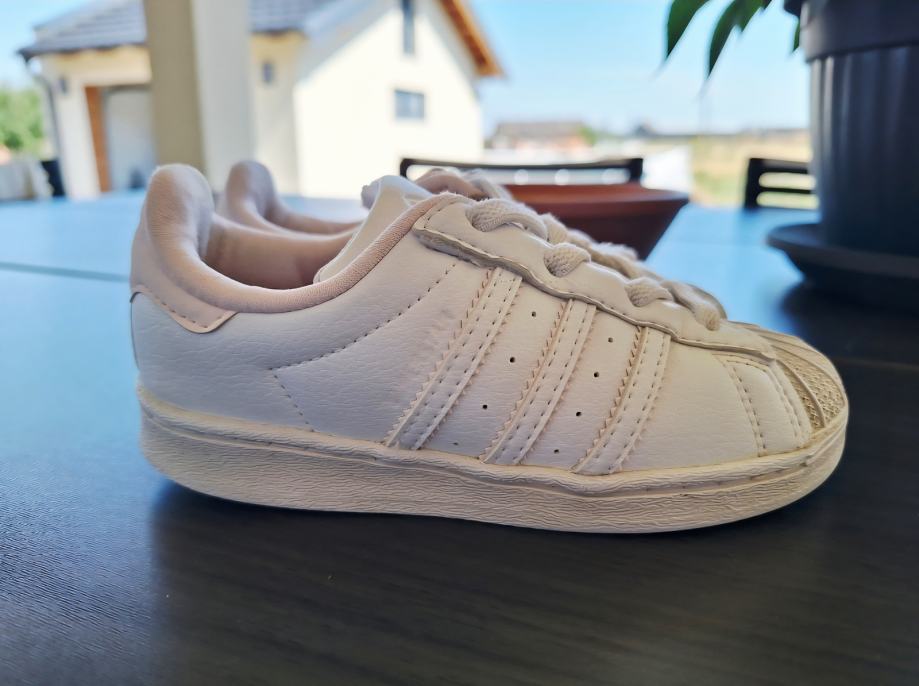 Adidas superstar tenisice, nošene s minimalno vidjivim tragovima nošenja( unutra na jeziku i ulosku- vidi na slikama), broj 26, za nogicu od maksimalno 16cm