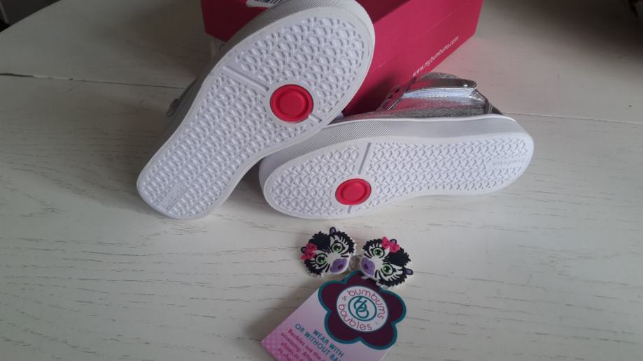 BUMBUMS & BAUBLES TENISICE-nove.Vel.28.Unutarnje gazište 18.8cm.Imaju i 2 gumena ukrasa zebrice koji se mogu staviti na tenisice (na vezice ili 2 remenčića,sprijeda i kraj gležnja).Jako udobne i fleksibilne.Za lakše obuvanje i izuvanje,patent s unutarnje strane,a vezice su elastične.Višak koji moja djeca nisu stigla nositi ili im nije odgovarao broj.