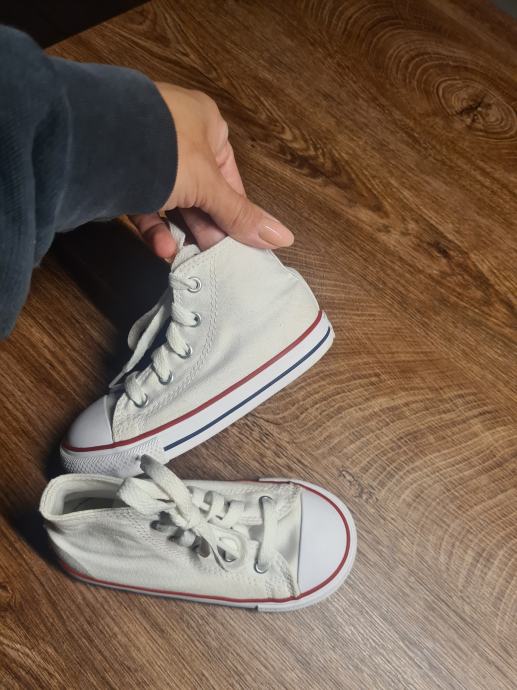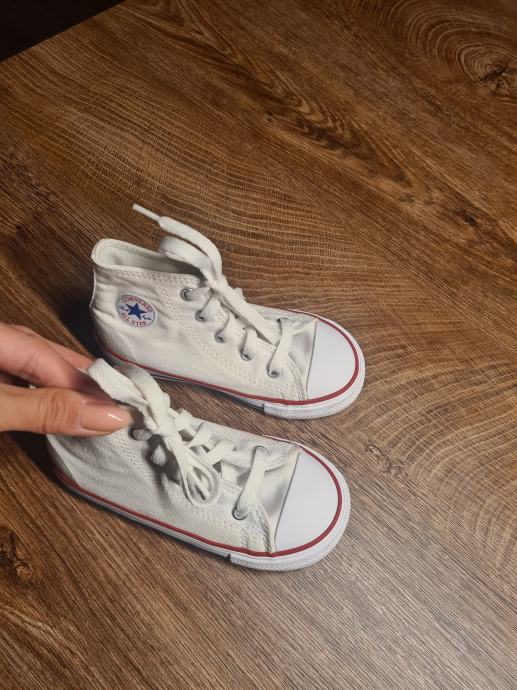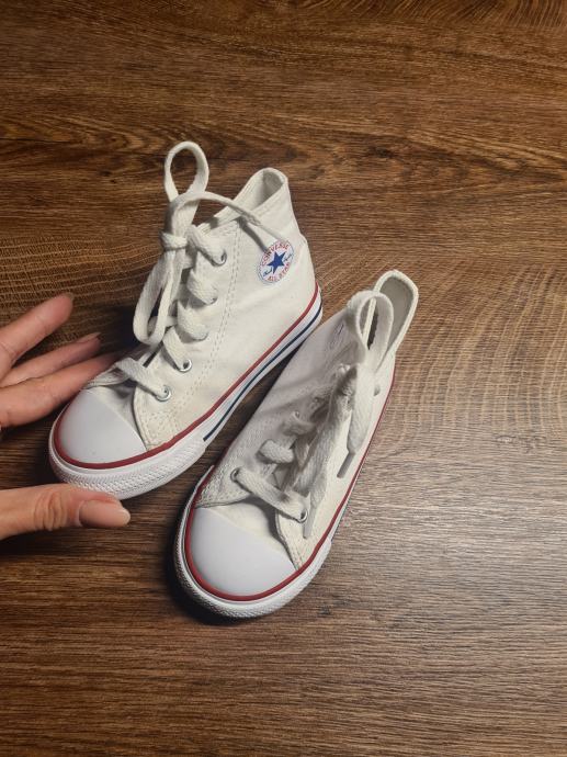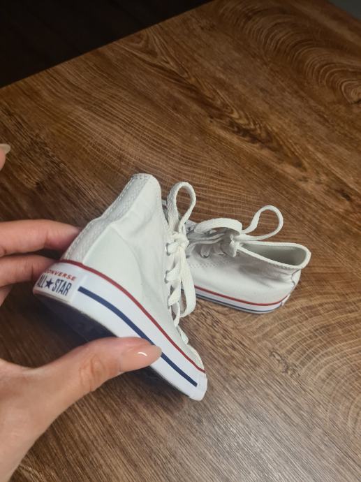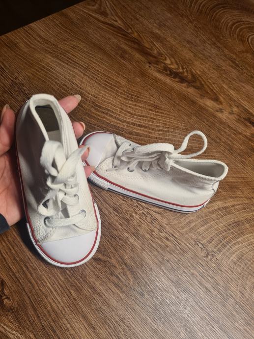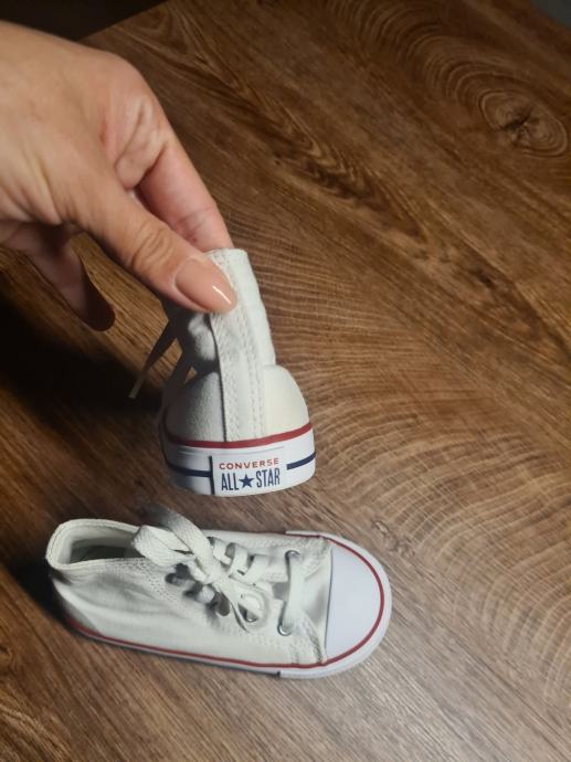 Prodajem potpuno nove nikada nosene dječje bijele Converse starke broj 24, dijete nije stiglo niti obuci. Nove u original kutiji.