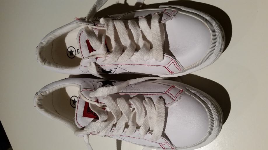 One Star Converse broj 37 (24cm),bjele kozne,nove. Isprobane dvaput po doma.Ipak su mi za pol broja manje i sada samo stoje u ormaru....postarina uracunata u cijenu :)