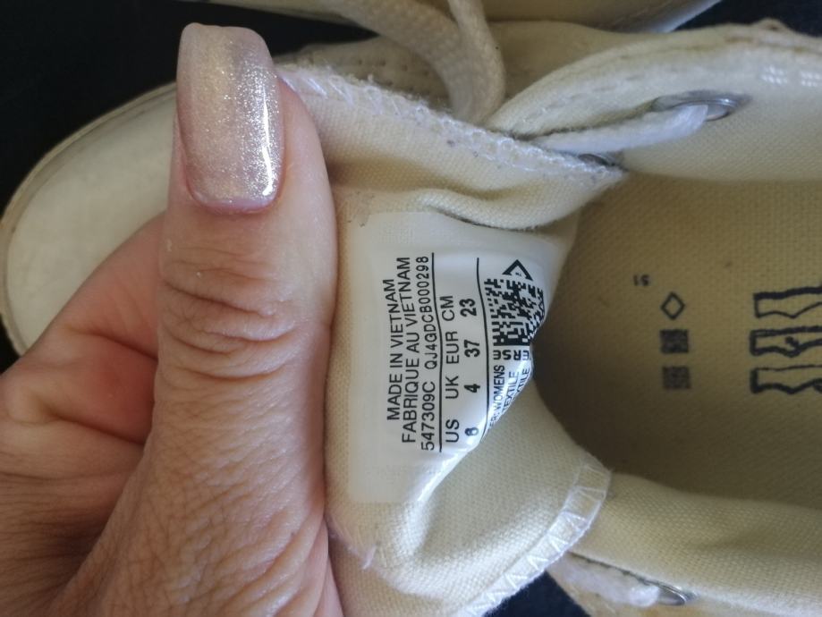 Platnene tenisice Converse starke. Piše 37 ali je manji kalup, dakle za 36. Bijele sa vezenim reljefom. Molimo Vas pošaljite sms