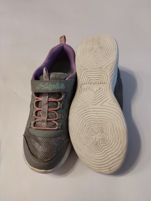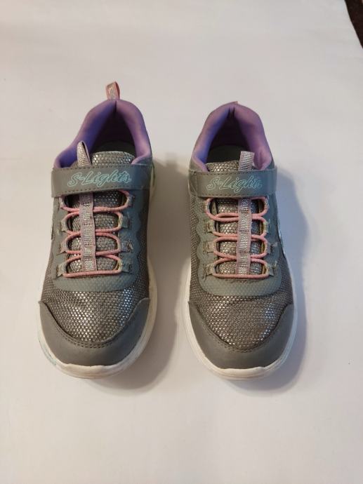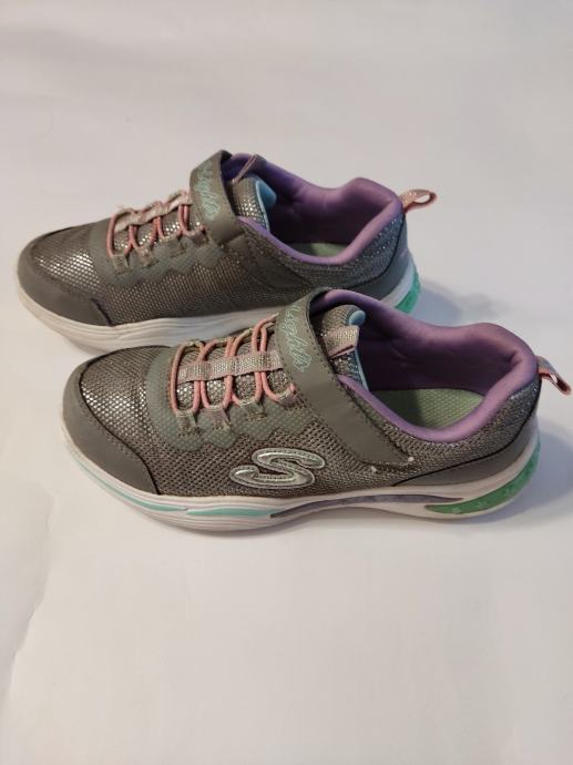 Prodaju se rabljene dječje tenisice brenda Skechers, broj 34, sivo-srebrene boje.