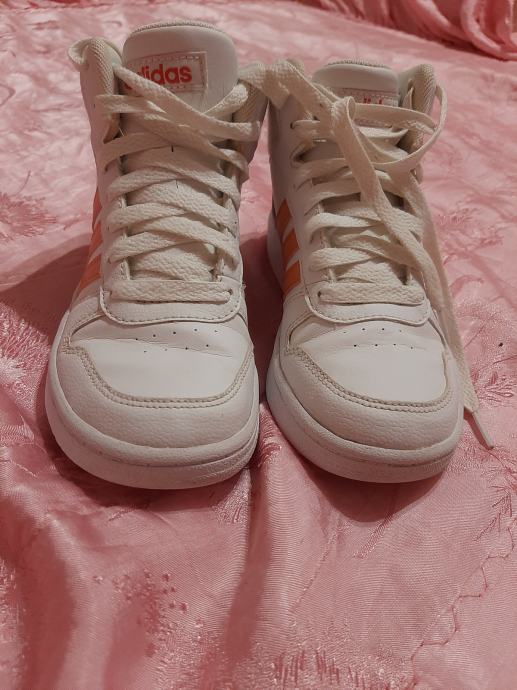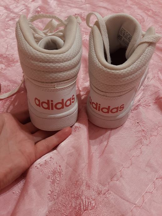 Prekrasne visoke dječje tenisice Adidas. Nošene svega par puta. Bez ikakvih oštećenja. Udobne i lagane. Bijelo - roze boje. Vel. 31 1/2. Unutarnje gazište 19.5cm