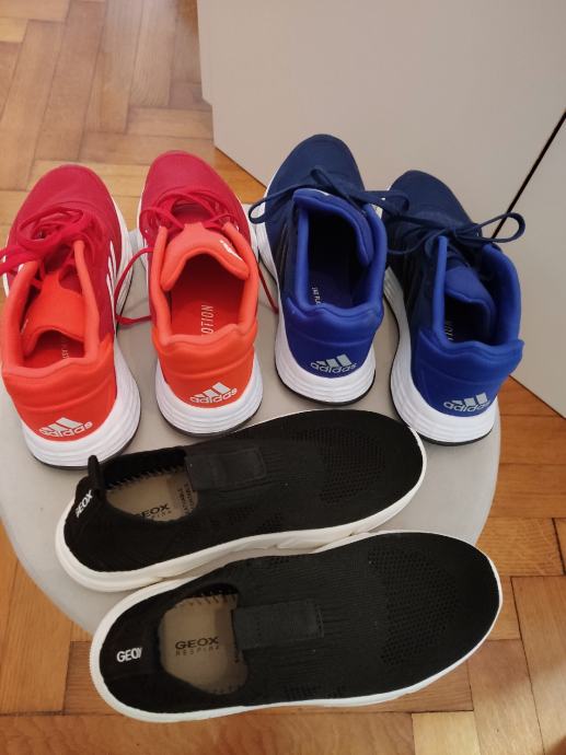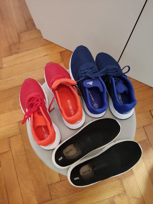 Adidas crvene i plave za dečka 36, crne Geox 36. Krem 33 za curicu. Nove. Svake po 20 e