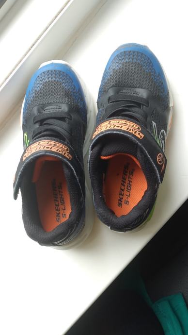 Nosilo jedno dijete. Duzina uloska 20cm. Idealno za stopalo duljine 18,5cm. Imaju dvije crne crte naprijed. Jedna svijetli, druga ne. Saljem. Pogledajte i druge moje oglase.