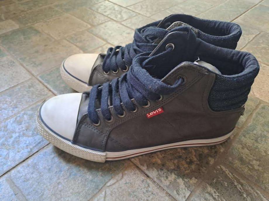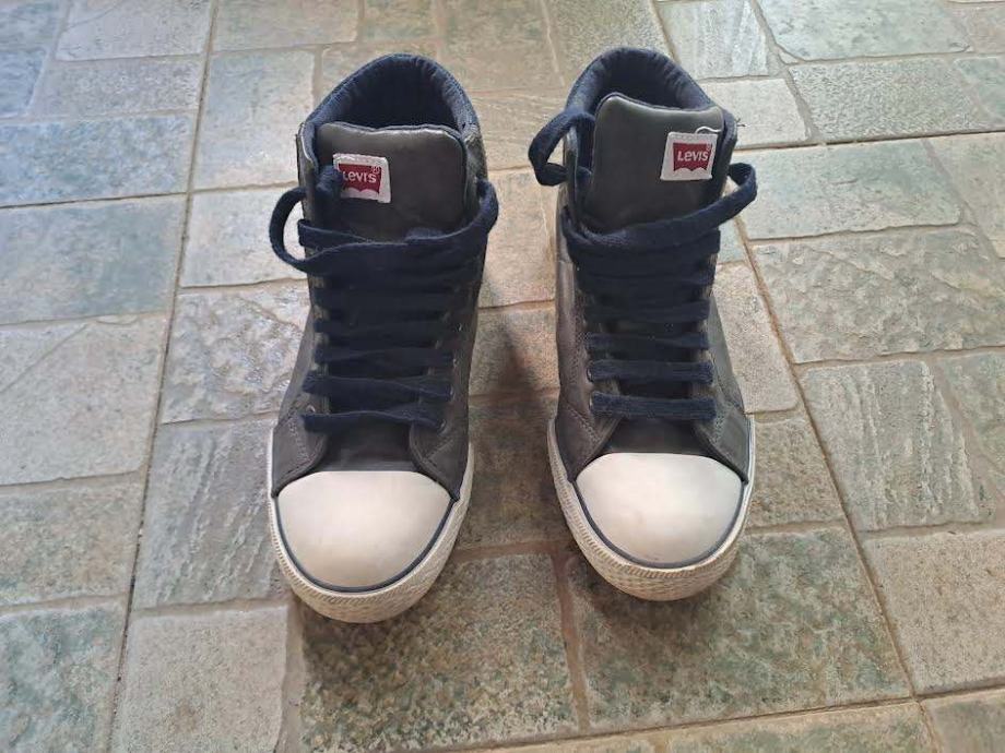 Maslinasto zelene visoke kožne tenisice- u kombinaciji s tamnoplavim. Očuvane i jako kratko nošene. Veličina 39.
