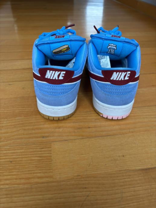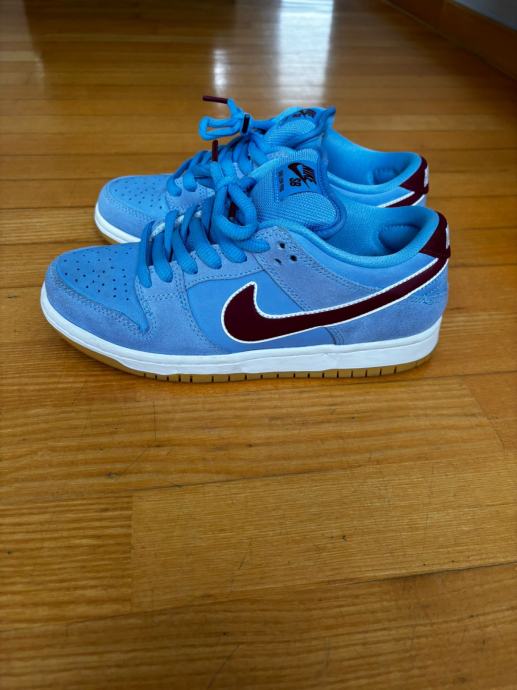 Prodajem originalne Nike SB Dunk Low u posebnoj Phillies colorway kombinaciji (svijetloplava/bordo). Tenisice su jako malo nošene, očuvane i u odličnom stanju. Dolaze bez originalne kutije.Veličina 37.5.