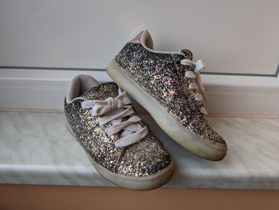 Svjetlucave tenisice za djevojčice br. 30.5, desna svijetli kad se hoda, jako posebne i efektne uživo, sa šljokicama.
