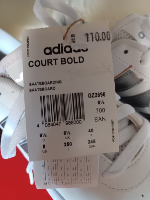 Prodajem POTPUNO NOVE, samo jednom isprobane (nazalost meni su premale) tenisice ADIDAS COURT BOLD. Br je 40 (UK=6 i 1/2, US=8), mislim da je kalup blize broju 39.