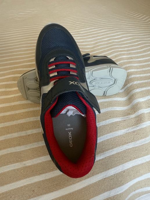 Prodajem nove Geox respira tenisice u veličini 36, plavo-crvene kombinacije boja. Dolaze s etiketom i potpuno su nove. Tenisice imaju čičak zatvaranje i vezice, te bijeli potplat. Geox tehnologija omogućava prozračnost i udobnost stopala tijekom nošenja. Prikladne za svakodnevnu upotrebu i sportske aktivnosti.